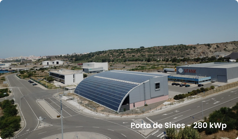 En nuestro portafolio encontramos algunas de las más grandes y complejas obras de fotovoltaico en cubiertas de edificios, especialmente la instalación fotovoltaica del puerto de Sines, con 280 kWe instalados.